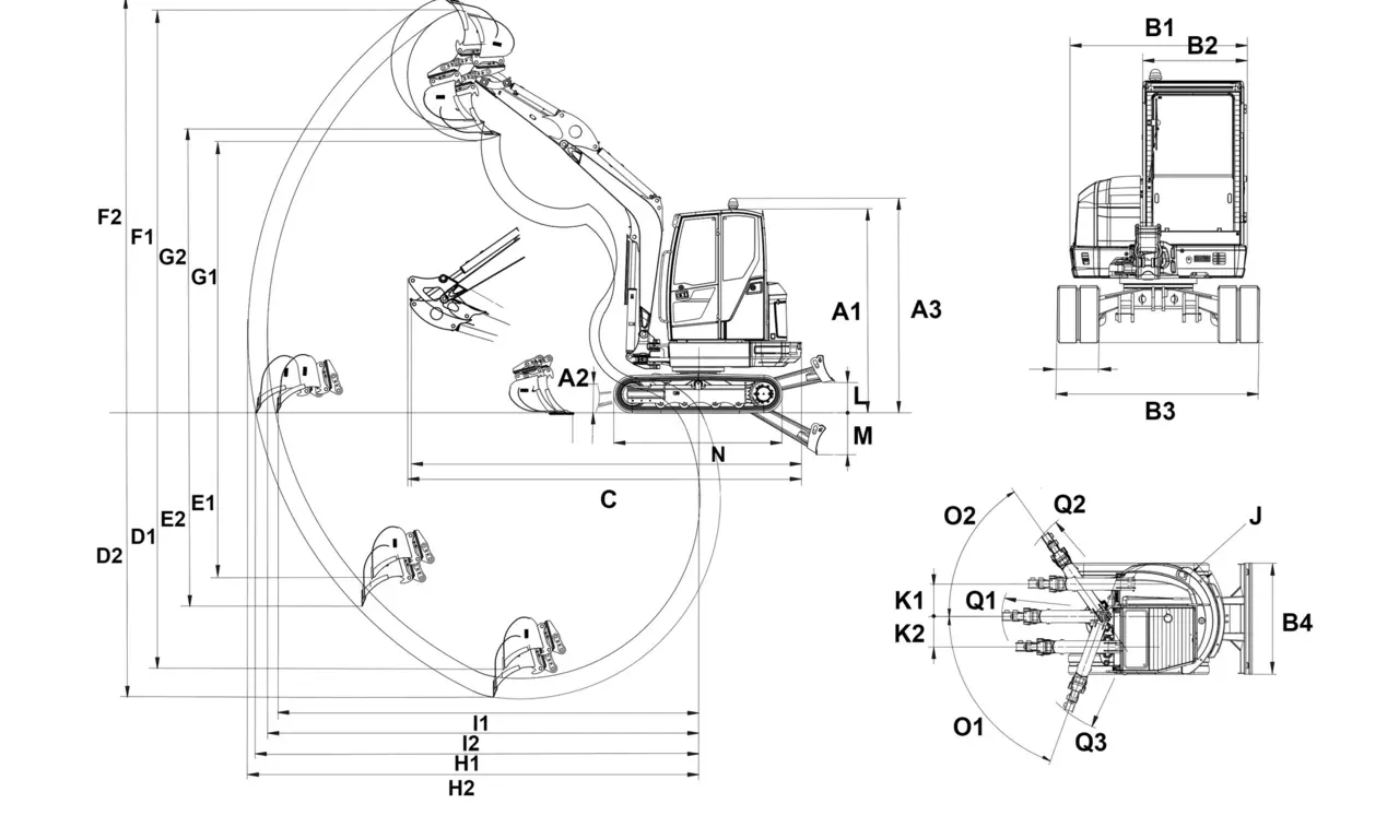 B Width revolving superstructure 1,724 mm